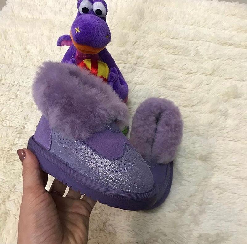 Якісні дитячі угги для дівчинки із блискітками) Виконані із натуральноі замші та утепоені натуральноі щільною овчиною!Підошва неслизька!