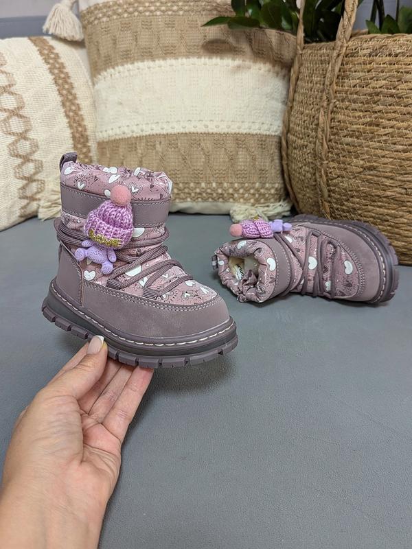 Наймиліша Зимова новинка для дівчаток від тм Том.М Якість шикарна. Верх еко шкіра та водонепроникна плащівка, яка не пропускає вологу та холод. Всередині густе тепле хутро ( натуральна овчина 60%). Збоку є замочок. Дуже легесенькі, немов пір'їночки. Виглядають мега круто. Рекомендую! Розміри: 23р-14,8см 24р-15,5см 25р-16см-2шт 27р-16,7см-2шт 28р-17,4см 28р-18см ✅✅Ціна. 1000
