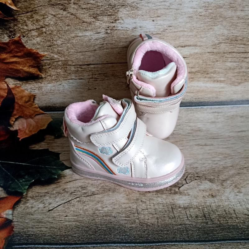 В наявності ✅Ціна 425 гривень Демісезонні черевички для дівчаток. Верх еко шкіра. Застібки на липучках та збоку замочок. Утеплені флісом. Розмір: 👌22-13,5см 👌24-15см