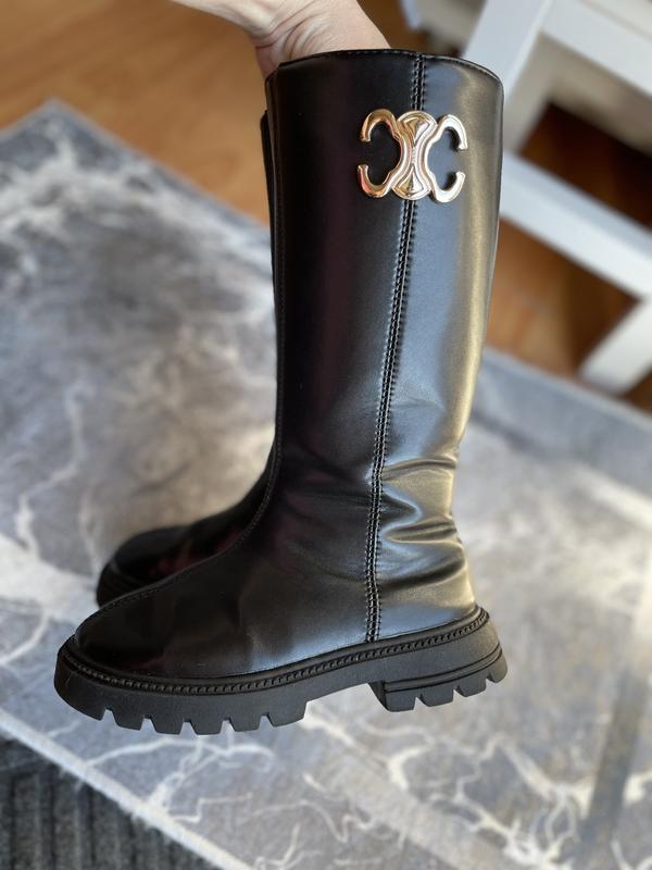 Високі та зручні сапожки, в дуже гарному стані. На лівому маленький дефект, видно на фото