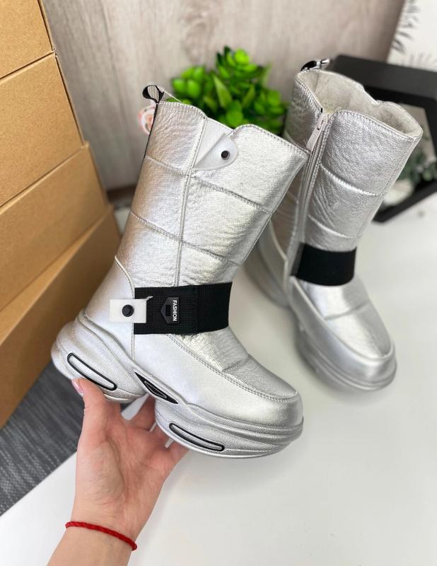 💎 Шикарні сріблясті сапожки.💎 Збоку блискавка, спереду функціональна липучка. Усередині утеплені овчиною (60% натур.). Підошва товста, не промерзатиме. На ніжці виглядають круто!❤ 36р. - 23,3см 36р. - 23,3см
