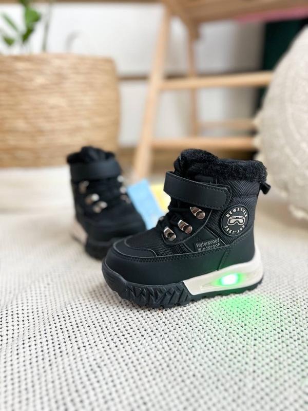 Дуже гарні Termo чобітки від ТМ Tom.M для маленьких хлопчиків❄️Виготовлені з непромокаючого матеріалу та екошкіри!Серединка утеплена натуральною овчинкою(60%).присутні світловідбиваючі елементи.Також прорезинений носок проти збивання ! Фіксуються міцною липучкою та замочком..Дуже легенькі та зручні !В холодну зиму ніжкам буде дуже тепленько.Тепературний режим - 25 градусів ! Код: 62 Розміри: 24 - 15,5 см 25 - 16,3 см 26 - 16,7см 27 - 17,5 см 28-18,1см 🧸Ціна 1150 грн