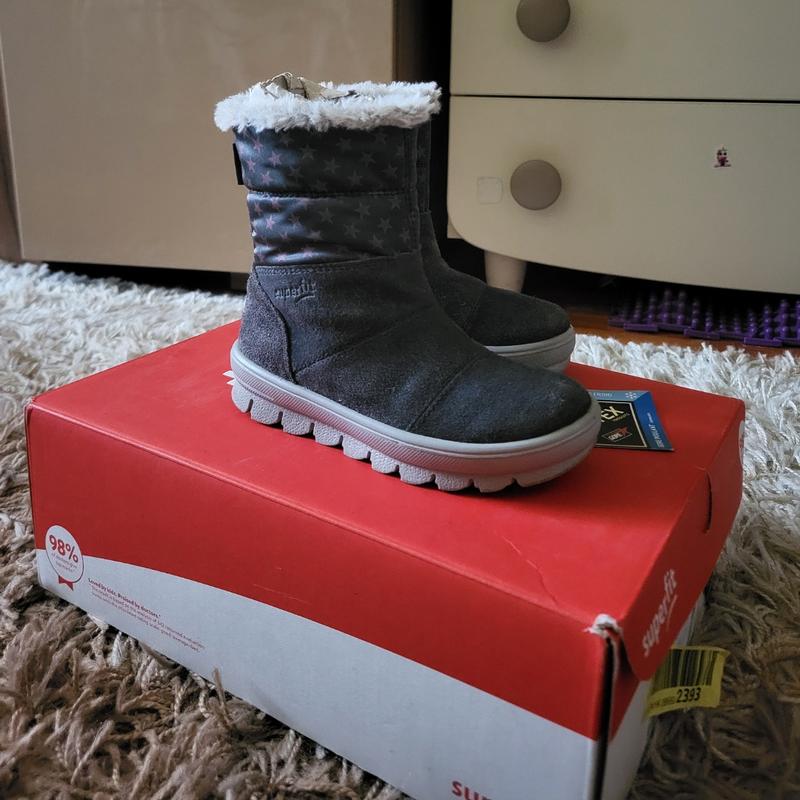 Теплые замшевые зимние сапожки Superfit с мембраной gore-tex на девочку, размер 26 ( стелька- 17 см). Состояние очень хорошее, на фото видно. После одного ребенка, покупала в Антошке в прошлом году. На смену были другие сапожки, поэтому носили эти не слишком часто. Один нюанс-чуть потерлось мех в одном месте возле замка, но под комбинезоном этого не видно и на нОске не влияет- последнее фото.