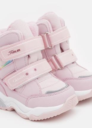 Зимові чобітки для дівчинки Tom.m - це практичне взуття на холодну пору. Верх виконаний з водонепроникного і вітронепродувного текстилю та шкіри, тому є стійким до впливу погодних умов. Гумова підошва забезпечує відмінне зчеплення з поверхнею та не ковзає. Черевики мають підкладку зі штучного хутра, що надає відчуття затишку у носінні. Фіксація двома липучками. Заміри: 22р.-14 см 23р.-15 см 24р.-15,5 см 25р.-16 см 26р.-17 см 27р.-17,5 см