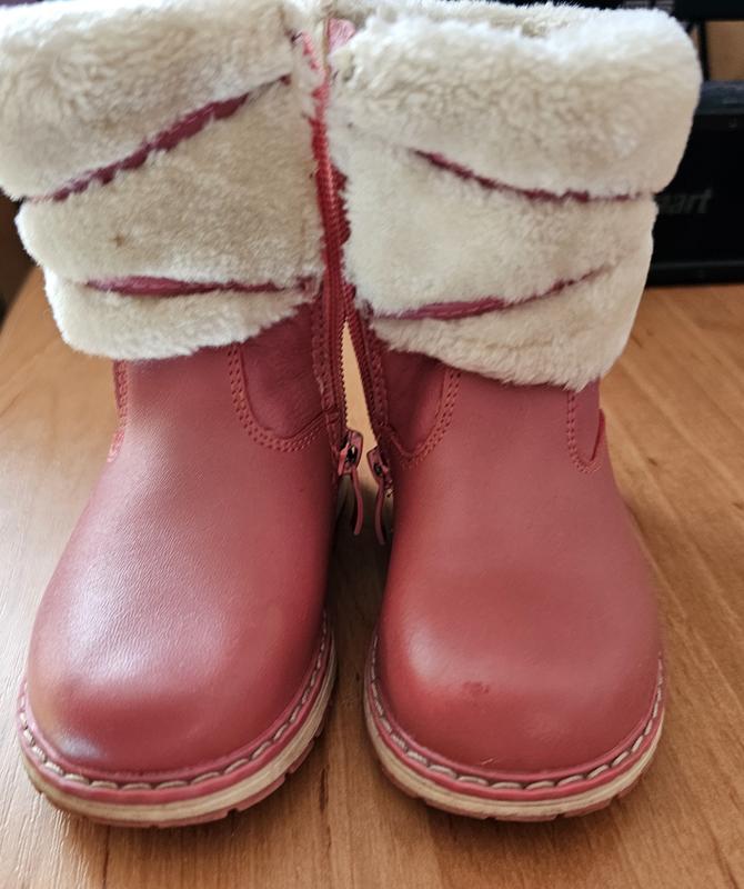 Шкіряні дитячі чоботи. Дихаюча прошита підошва, хутро всередині. Носили дуже мало, оскільки вчилися ходити, то більше їздили у візочку. Стан видно на фото.