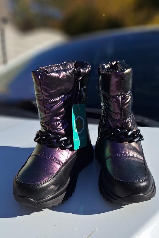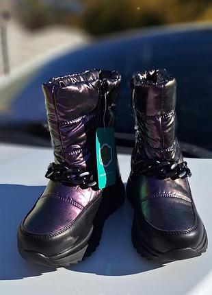Круті і теплі дутики з ланцюжком фірми Paliament. Матеріал - водонепроникна плащівка/еко-шкіра, всередині хутро, на блискавці. Товщина підошви 3,5см, высота 17-18см в залежності від розміру. Розміри: 27 - 17,7см 29 - 19см
