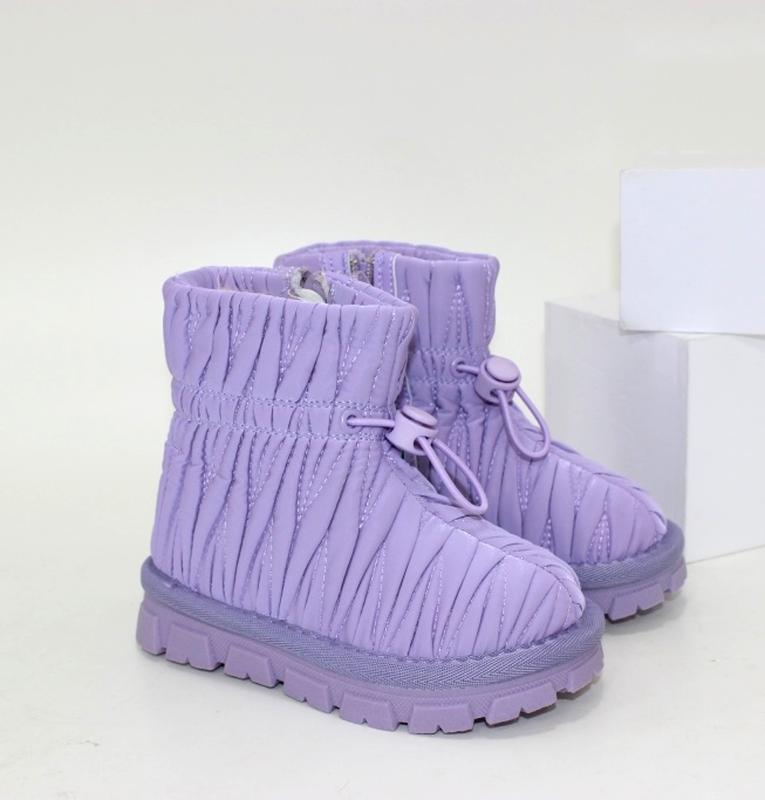 Теплі бузкові дутики чобітки для дівчаток на хутрі