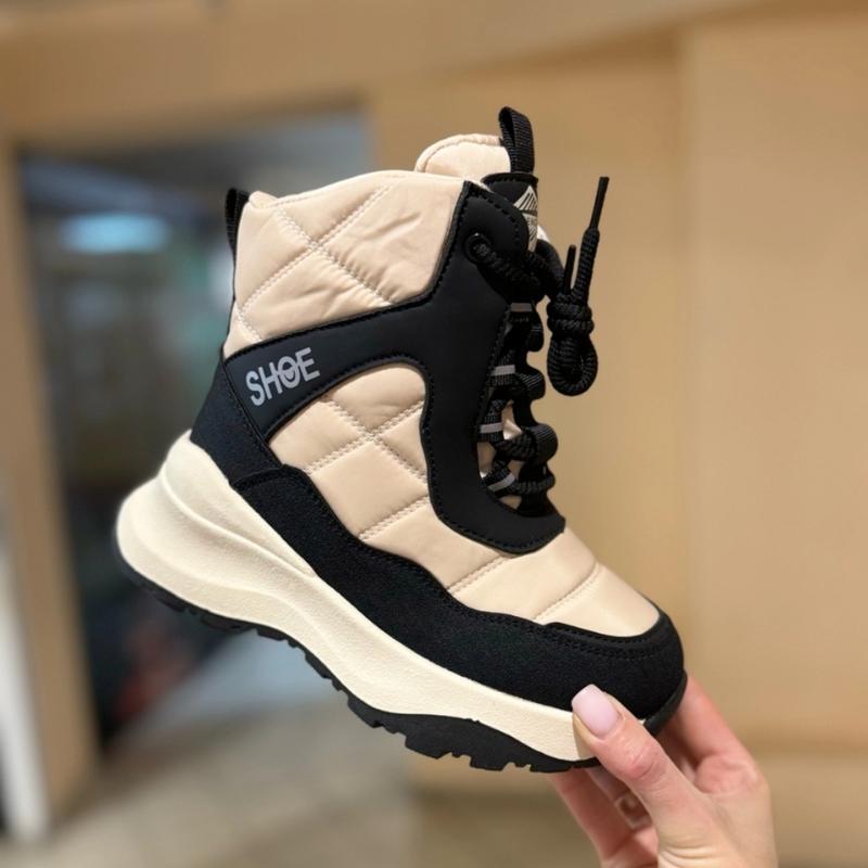 від тм **** ***** Верх еко шкіра та водонепроникний матеріал . Середина густе тепле хутро ( натуральна овчина 60 %). Застібка на шнурівку. Збоку є замочок. Якість бомбезна. 32- 20,7 см 33 - 21,3см 34 - 22см 34 - 22см 35 - 22,5см 35 - 22,5см 36 - 23,2см 37 - 23,8см @