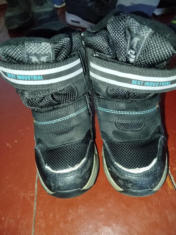 чоботи дитячі теплі, зимові. Розмір 28, по устілці 18см. Стан на фото. замки працюють але бігунків не мають. Взувались через липучки, замками не користувались, не замокають.