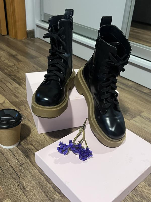 Черевики чорні , підошва коричнева(носок 3 см) (пʼятка 5 см)