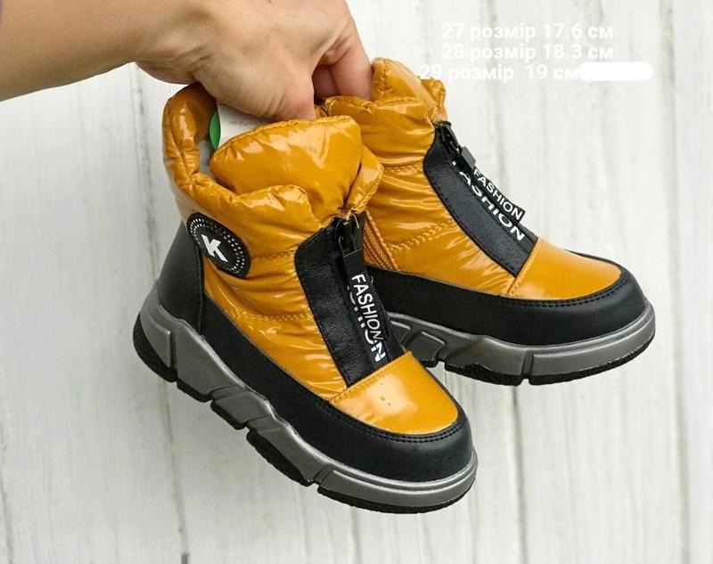 Дутики для самих стильних дівчаток Легкі та зручні Комбінація плащівки і замінника Не пропускають вологу Всередині тепле хутро (60% натур) Збоку блискавка є снігозахист лена 27 розмір 17.6 см 28 розмір 18.3 см