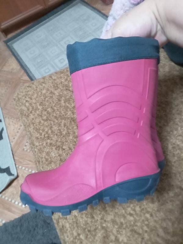 стан дуже хороший,колір рожевий,утеплені,внутрі шерсть на тканевій основі,необхідна річ на мокру погоду,по підошві 19 см,устілка не виймається