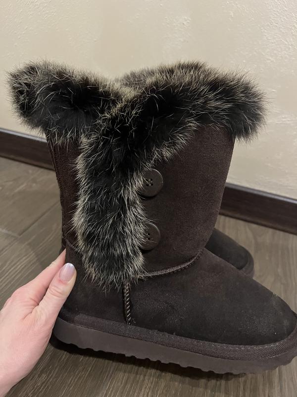 Красивые угги, отделка настоящий мех, середина искусственный мех, но теплый. Состояние отличное. На ножку 22 см