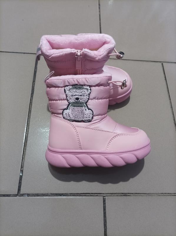 Нові легенькі зимові чоботи для дівчинки. Колір : рожевий. Збоку застібка блискавка. Висока підошва,холоша зверху стягується,щоб не попадав сніг. Утеплювач : полушерсть. Розмір 23,устілка 15 см Розмір 24,устілка 15.5 см Розмір 25,устілка 16.4 см Розмір 26,устілка 17 см Розмір 27,устілка 17.5 см Розмір 28,устілка 18.2 см Доставка : Нова пошта Укрпошта