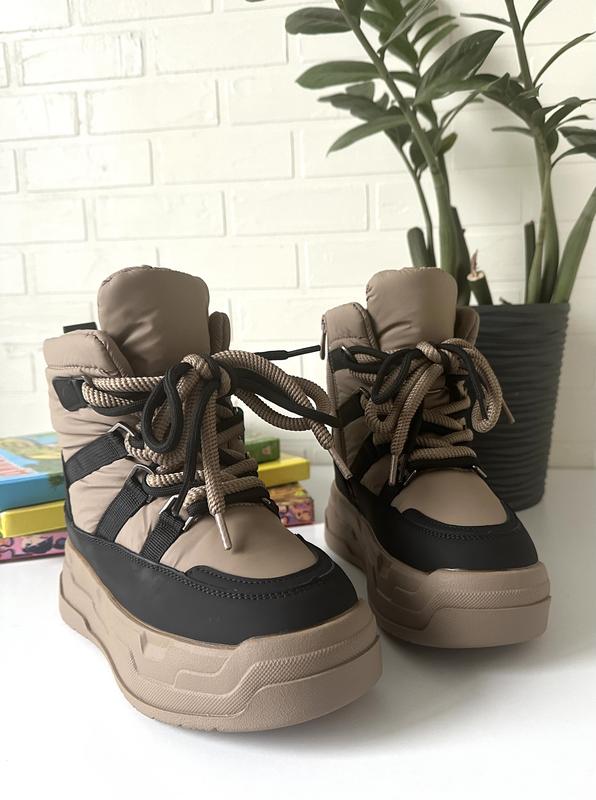 Дуже стильна та якісна модель з нової зимової колекції Якісна еко шкіра +водонепроникний текстиль Шнурівка+ бічний замочок Утеплені овчиною Розмірний ряд 32 - 37 34-22.5 см - 2 пари