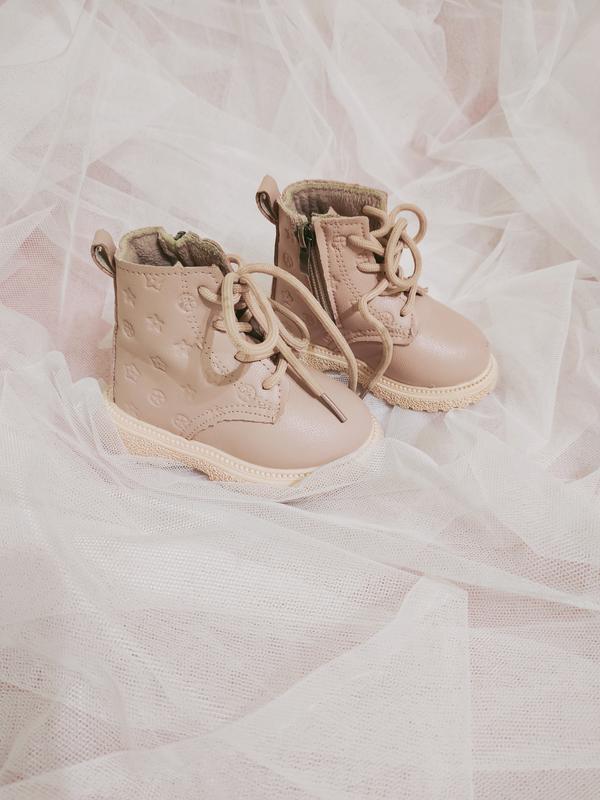Ботиночки в пудровому кольорі, повністю утеплені флісом, на ніжці виглядають дуже акуратно, замки робочі❤️ чудові черевички для перших осінніх прогулянок, ідеально на холодну осінь🍂 розмір 21 по стельці 13.5 см.