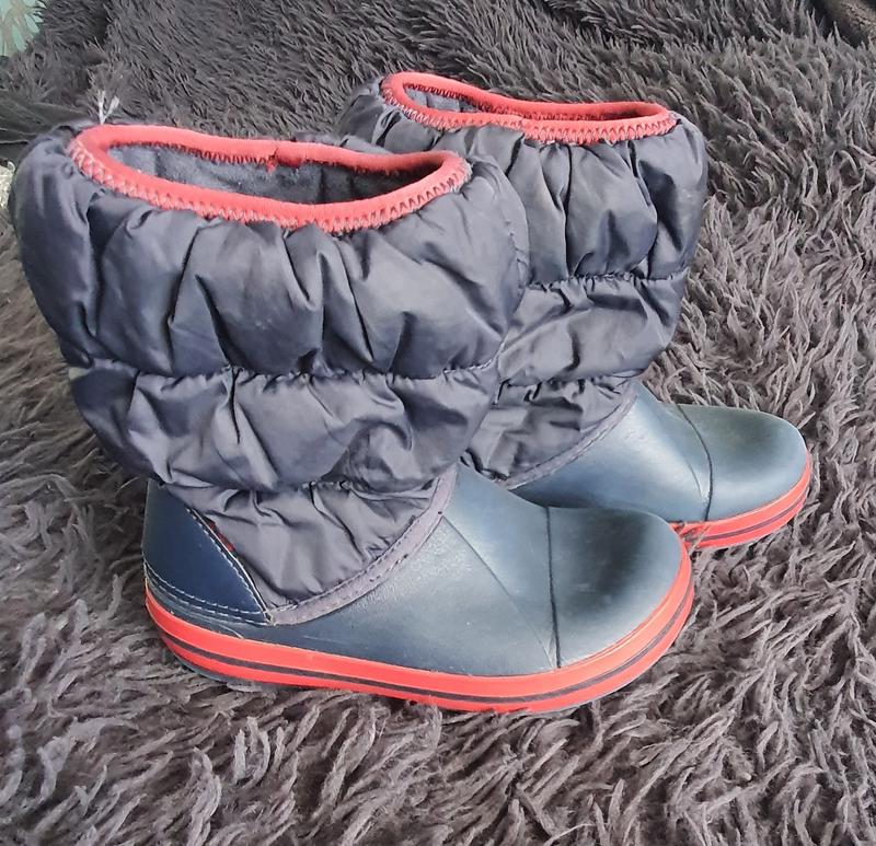 Чоботи підійдуть як для сухої погоди так і на дощ, внутрі баечка, можно як для хлопчика так і для дівчини, є нюанс на останньому фото видно ,на одному чоботі відклеялось слово crocs