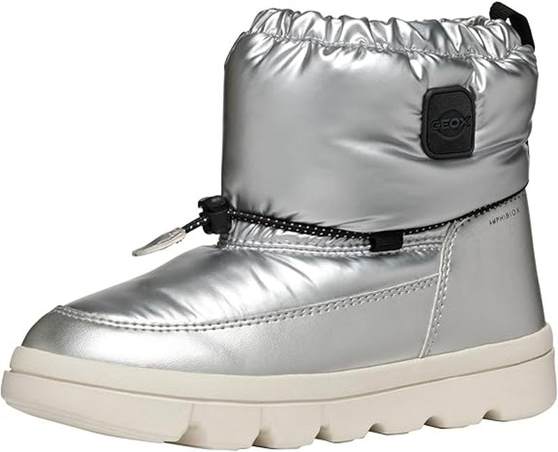 Зимові черевики джеокс Geox Willaboom, 39 євро 100% оригінал Колір Silver Black 39 євро, довжина устілки 25,0 см до загину на п´яті ОПИС: - Верх: нейлон - утеплювач - штучне хутро - знімна устілка - мембрана Amphibiox + Respira™ - Зручне взування — застібки куліски - темп. рнжим - від -5°C до -15°C для щоденного носіння