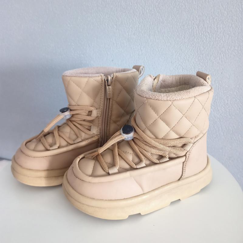 Дуже теплі, не промокають, всередині овчіна, замки працюють добре, є трохи подряпин попереду чобітків , довжина устілки 18,5 см
