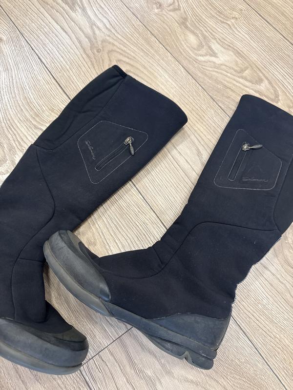 На ногу 22,5 см. Дуже теплі. Комфортно в мороз навіть -20. Витримують вологу погоду, дощ.