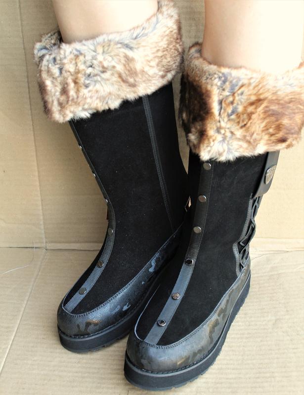 йдуть без коробки без дефектів EUR 39 ,UK 6 ,USA 8 ,JAPAN 26 , довжина устілки від краю до краю 25.5( включно з бортіком) і ширина 8,8 см висота від пола 34 см , максимум в розгорненому стані 41,5 см ширина у найвужчому місці 18 см (напівобхват) EUR 37 ,UK 4 ,USA 6 ,JAPAN 24.5 , довжина устілки від краю до краю 24.5( включно з бортіком) і ширина 8,2 см висота від пола 32 см , максимум в розгорнутому стані 39,5 см ширина в найвужчому місці 5 см (напівобхват) EUR 36 ,UK 3 ,USA 5 ,JAPAN 24 , висота від підлоги 32 см , максимум в розгорнутому стані 39,5 см ширина в найвужчому місці 13,5 см ( напівобхват ) внутрішній напівобхоп верху 15,5 см Доставка: Відправляю Новою поштою частковій (150 грн ,решта суми у накладному) або повній передоплаті Укрпоштою Ви захочете носити ці суперстильні снігові протягом усього дня! Вони також подарують вашим ногам тепле та затишне відчуття під час зимової прогулянки снігом. Технологія AWS COOLNET-FELT забезпечує додаткову підтримку, послаблює тиск і зменшує удари п'ят. Спеціальна дихаюча стільникова структура забезпечує комфорт та м'якість для ваших ніг та щиколоток. Структура видаляє вологу, яка надходить з ніг, і забезпечує відчуття сухості. Стільникова структура в поєднанні з додатковою тепло-фетровою кулею гарантує, що ви залишаєтеся теплою і сухою. Поєднання замші та текстильного меха надає черевикам шикарний вигляд. Гумова підошва гарантує, що ви не ковзаєте на мокрих чи крижаних поверхнях. Снігові з синтетичним мехом Водовідштовхувальні снігозаходи Водонепроникні снігові з підкладкою