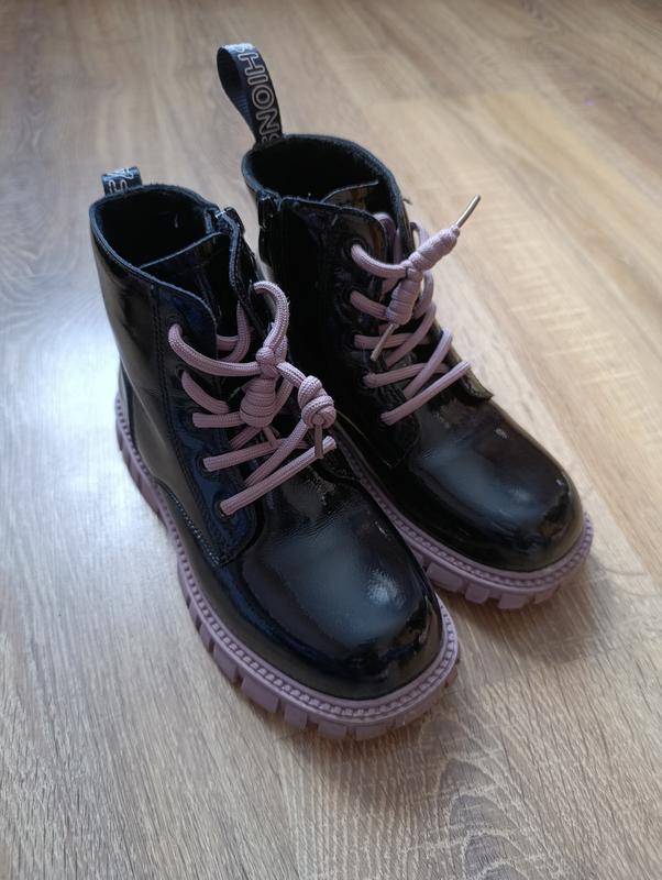 Демі чобітки на дівчинку Лакові ,стелька 21 см поносили не довго ,нюанси на останніх фото ,є подряпини ,при носці не сильно помітно)