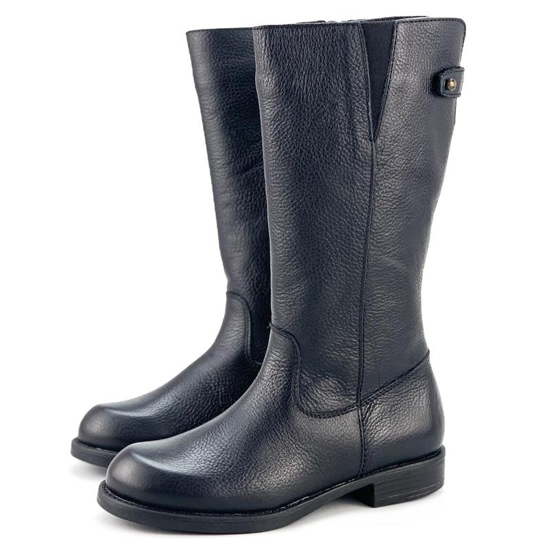 Демісезонні чобітки дівчинці Unisa (Іспанія) - верх: натуральна шкіра - підкладка та устілка: натуральна шкіра - фіксація: бічна блискавка - підошва: прогумований матеріал - сезон: весна/осінь - прошиті по всьому периметру - колір чорний - висота чобітка 27 см EUR 29, довжина устілки 18,8 см