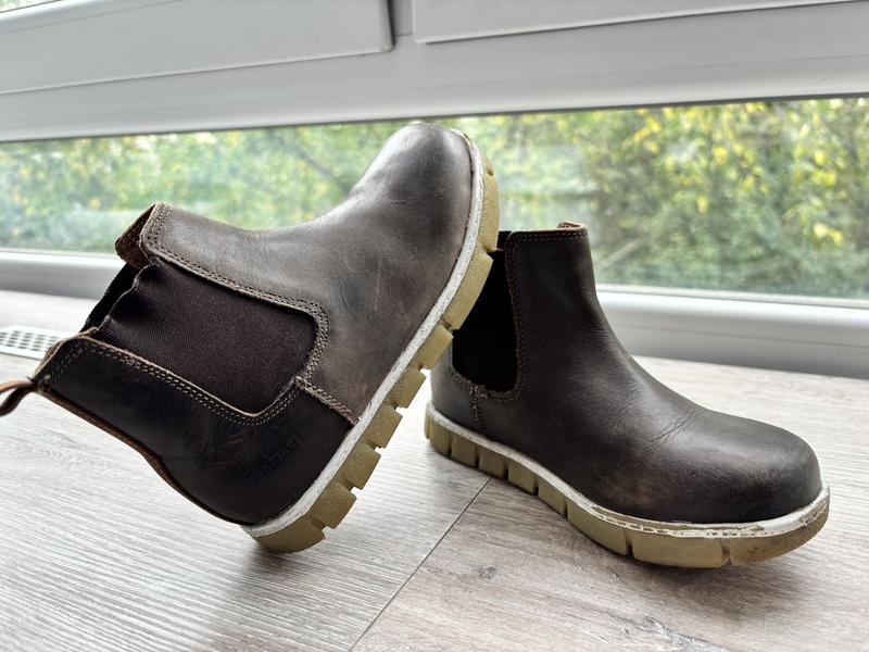 Дуже якісні шкіряні чобітки в чудовому стані, трохи стерта біла фабра на підошві. Взували десь 2-3 рази.