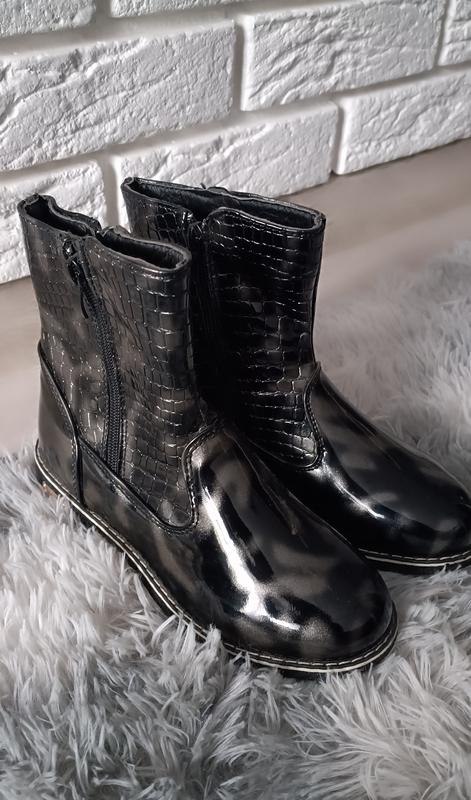 Лакированные сапожки 34 размера. Новые, но имеют малозаметные царапины на правом сапожке, видны только с близкого расстояния.