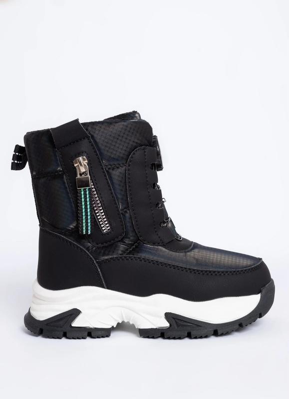 Чоботи дутиші для дівчаток Китай Матеріал верху - екошкіра, плащівка Застібка- утяжка, змійка Утеплювач - хутро Устілка - хутро, супінатора немає Підошва - ПВХ, висота 3.5 см Висота чобота від 15 см Розміри 27-32
