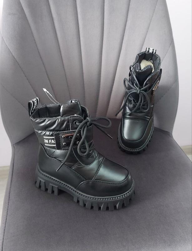 💜 Размер: 27 - 16,9см 28 - 17,6см 29 - 18,3см (2пари) 💜 Невероятная зимняя моделька от*** для меньших модниц, - верх эко кожа + водоотталкивающий материал, - внутри утепленные 60% натур.овчиной, - кулиска рабочая, - шнурки рабочие, присутствует липучка, - сбоку на молнии, - толкающийся задник хорошо фиксирует ножку, - высота танкетки в 27р - 2см/3см, - моделька удобная, хорошее качество. 💜 telegram