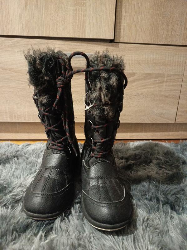 Нові чоботи шкіряні з хутром, зверху стьобані на шнурівці збоку на замку ...Повністю нові жодного разу не вдіті на розмір 35 устілка 21 см .Дуже теплі ...