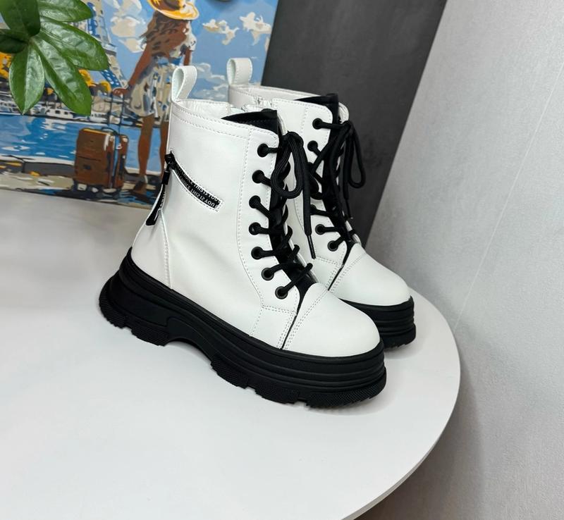 Зимние теплые сапоги сапожки для девочки белого цвета черная подошва шнуровка и замок реко...