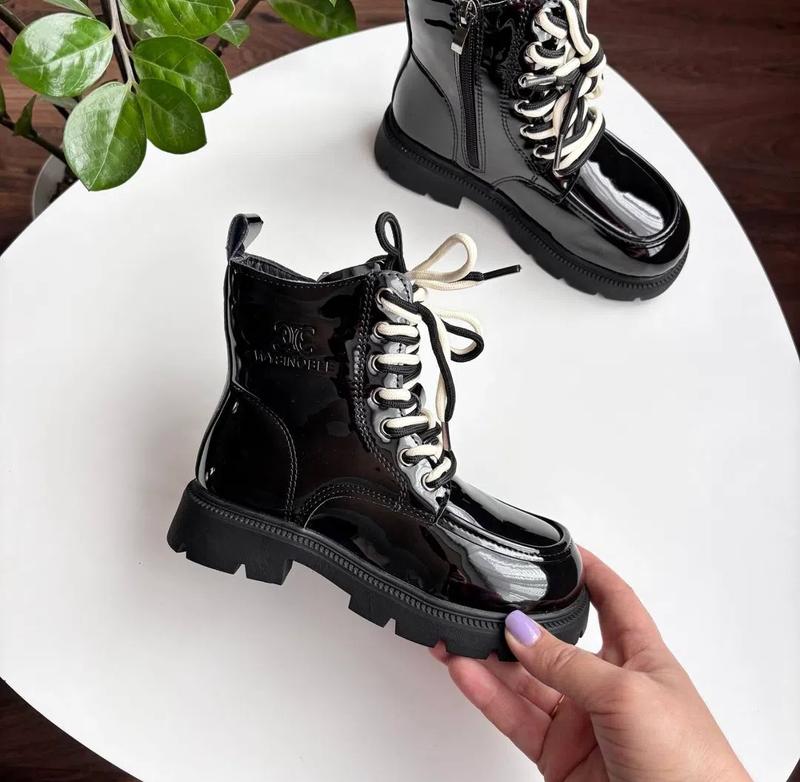 Стильні зимові черевики Верх лак бокова змійка та шнурок Утеплені хутро Легенькі Маломірні замір устілки 33-19.7 см 36-21.5 см 36-21.5 см 37-22 см