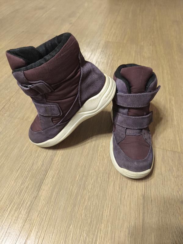 Чоботи eco gore-tex розмір 29 Устілка — 18.5 см, з загином — 19 см, знімна. Всередині-хутро, ємбрана Gore-tex. Висота чобота — 13 см. Колір фіолетовий. Про-во Індонезія. Стан дуже гарний.