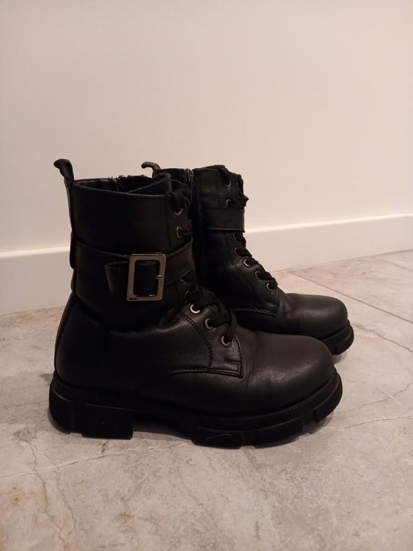 состояние хорошее. кожаные внутри овчины, теплы один замок слегка съедает.но закрывается отходил ребенок сезон размер 35