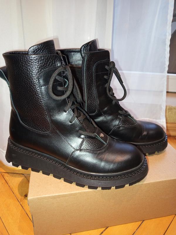 Шкіряні чоботи на хутрі ,устілка 25,5-26 см ,на середню та вузьку ногу ,зручні ,стан нових .
