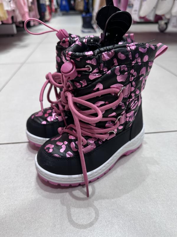 Дуже теплі зимові дуті чоботи для дівчинки , на блискавці з декоративною шнуровкою, є світловідбиваючі елементи. Підошва гумова з протекторами, для безпеки дитини, всередині мʼякенькі, матеріал поліестер, вовна. Гарно захищають від вітру.