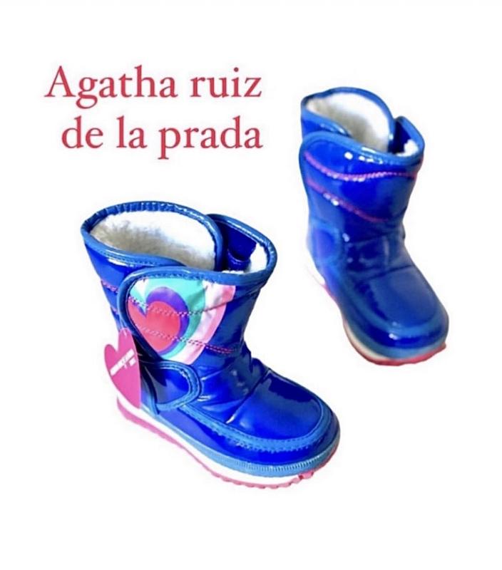 Дитячі снігоходи для дівчинки із колекції відомого іспанського бренду Agatha Ruiz de la Prada. Утеплена модель виконана із синтетичного водовідштовхуючого матеріалу,який утримує ніжку в теплі.Підкладка-штучне хутро. Модель має круглий, ущільнений носок,гумову підошву – міцну та стійку до пошкоджень. Застібка на липучці збоку зовні. Посилений задник стабілізує п'яту і утримує ногу у взутті, щоб вона не вислизала під час руху. Чоботи мають завищену халяву. Дутики виконані у фірмовому стилі бренду Agatha Ruiz de la Prada:яскравому блакитному кольорі з малиновим серцем.