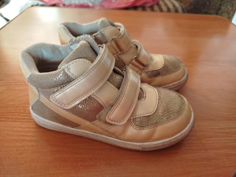 Продам дитячі черевички, розмір 31 по столиці 19 см фірма Случ. Регулюються збоку на змійці, а попереду на двух липучках Колір золотистий Пересилаю Торг