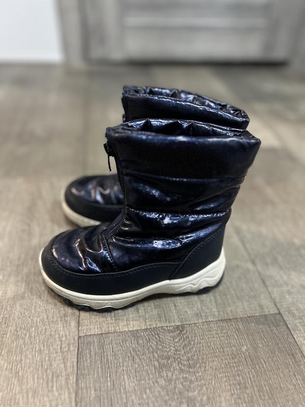 Темно сині , дутіки , утеплені , замок працює є сліди носки , довжина устілки 17,8