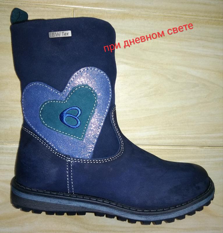 Чоботи демісезонні утеплені Billowy( Іспанія),виготовлені в Німеччині. Акуратні, легкі. Матеріал верху - нубукова шкіра. Утеплювач-штучна повсть. Устілка також повстяна. Чоботи з мембраною BWTex. Водовідштовхувальні ,терморегулюючі. Підошва-термопластична гума ,нековзна. Красивий темно - синій колір . 29 р устілка 18,5 см