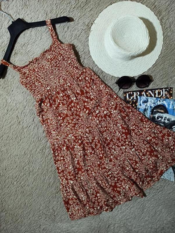 У відмінному стані.Гарна сукня з воланами. Тканина легка, не тягнеться. Розмір на бірці на 8-9 років(128-135см), але дивіться по замірам Заміри (напівобхват) : Груди 27(тягнеться до 38) Стегна 38 Довжина з шлейками 81