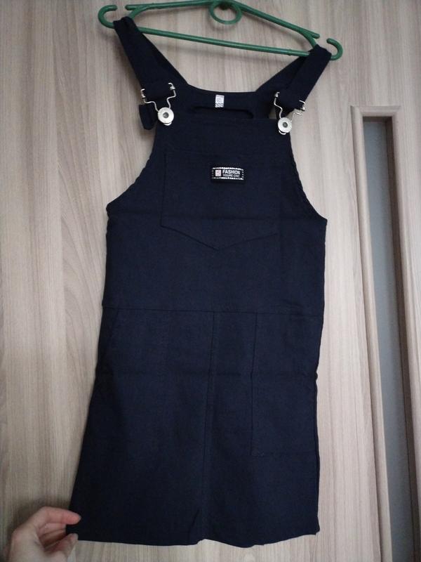 Сарафан 128р. Стан нового. Вдягнено на 1 Вересня і все. Тягнеться. Приємний до тіла. Карман на грудях та побоках.