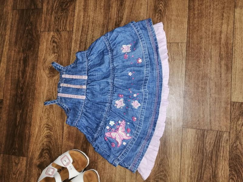 Сарафан котоновий дитячий з метеликами. У відмінному стані. Без дефектів. 100 % котон на 3-6 місців. Заміри довжина - 37см.