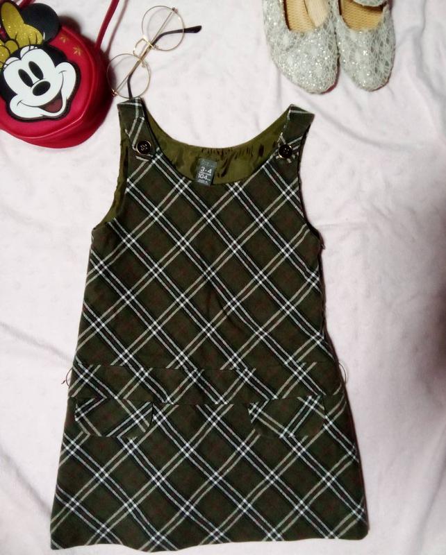 Сарафан Zara kids для дівчинки розміру 104, гарно виглядає під гольфик, стан ідеальний, для садочку шикарно. Спереду є імітація карманчиків, збоку прихована блискавка.
