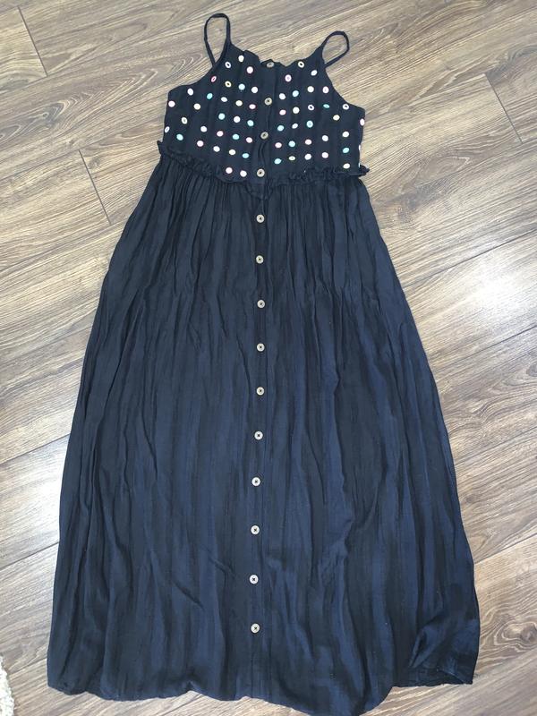Сарафан в підлогу!Стан дуже хорошийШлеечки регулюються,ґудзики відстібуються тільки до пояса Довжина: 119см Ширина під руками: 38см