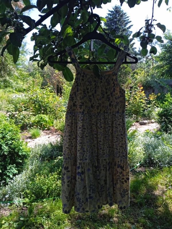 на 10-11р, длина 70,пог 35,верх прорезинений,низ ярусний, пишний,на підкладці,стан хороший , без дефектів, відправка від 100 грн два рази на тиждень