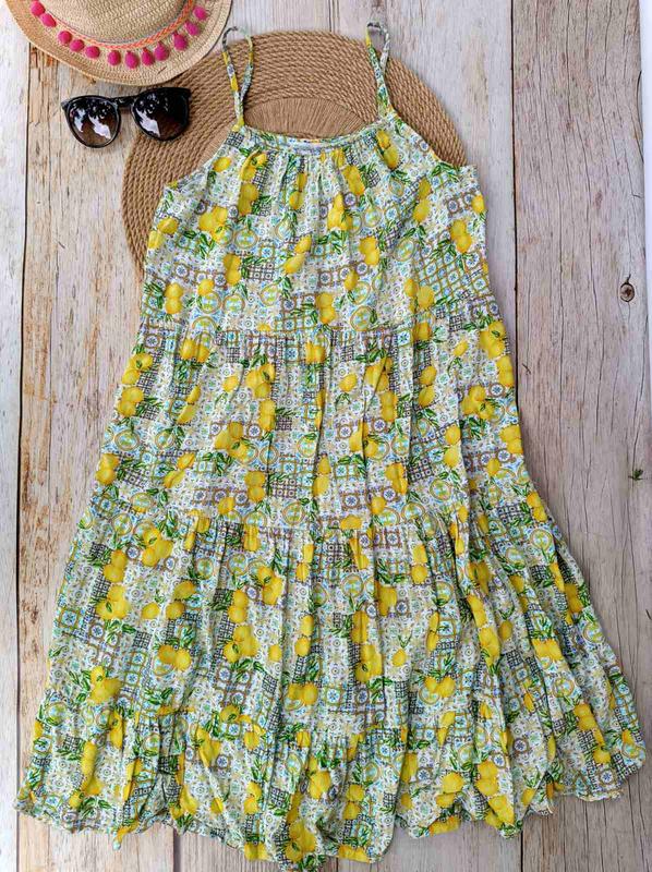 22🎀Шикарний сарафанчик з лімонами, тканина легка, приємна, тоненька, на спекотне літо саме то, крой вільний, стан ідеальний 📏10/11 років, довжина 92, пог 40