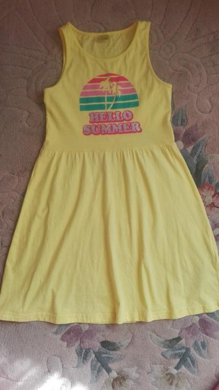 Літне трикотажне плаття. Колір ніжний жовтий дуже гарний. Без жодних дефектів та нюансів.